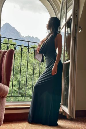 Gala Notte est la robe qui marie sensualité et élégance, avec une dimension durable. Confectionnée en Econyl®, un textile innovant et régénéré, elle offre la douceur d’une caresse soyeuse sur la peau tout en respectant l’environnement. Son décolleté profond à l’avant comme dans le dos sublime la silhouette avec audace et raffinement — idéale pour une soirée d’exception.